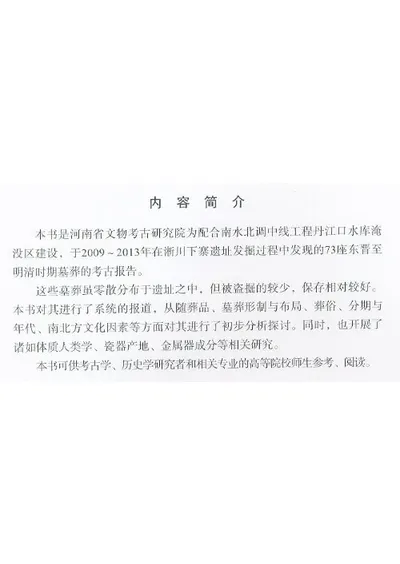 淅川下寨遺址 東晋至明清墓葬発掘報告