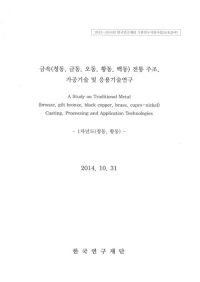 금속(청동、금동、오동、오동、백동) 전통 주조、가공기술 및 응용기술연구 (金属(青銅、金銅、烏銅、黄銅、白銅)伝統鋳造、加工技術及び応用技術研究) 1次年度(青銅、黄銅)