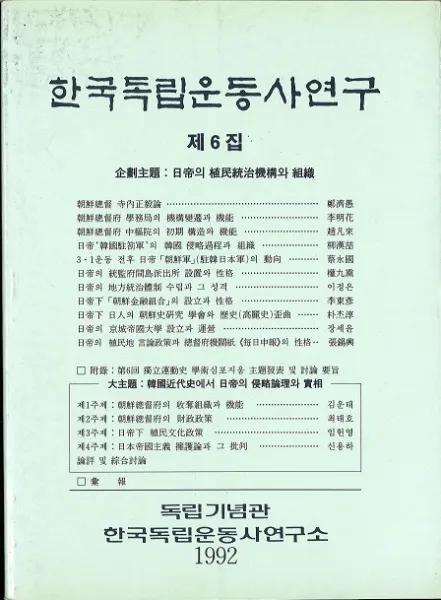 한국독립운동사연구 제6집 (韓国独立運動史研究 第6集)