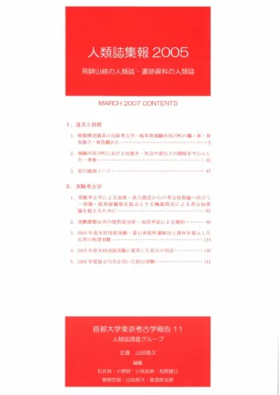 人類誌集報 2005 飛騨山峡の人類誌・遺跡資料の人類誌