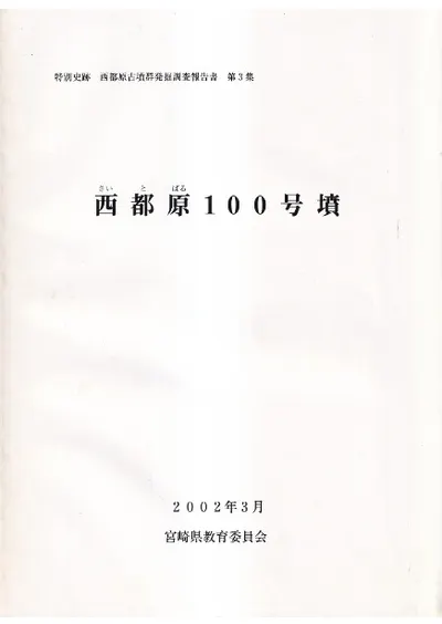 特別史跡西都原古墳群では、鬼の窟古墳、205号墳、13号墳に次ぐ発掘調査報告書である。全長80mの前方後円墳で、墳丘斜面部全体に施された葺石は見事である。別図に100分の1の縮尺の墳丘全測図は圧倒される。古墳群中にある30基ほどの前方後円墳の図面が集成されている。