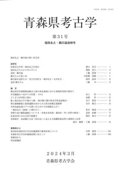 青森県考古学 第31号 福田友之・瀬川滋追悼号