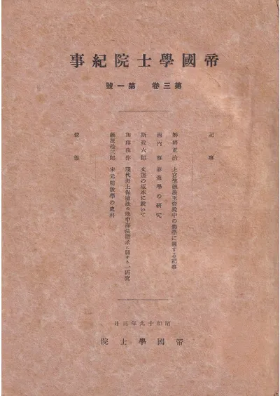 帝国学士院紀事 第3巻第1号