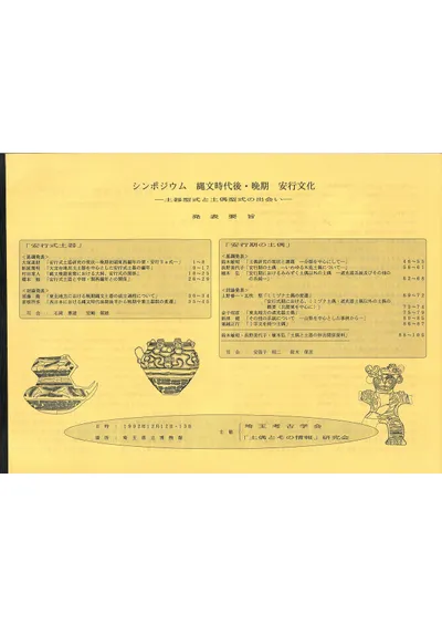 シンポジウム 縄文時代後・晩期 安行文化 土器型式と土偶文化の出合い 発表要旨