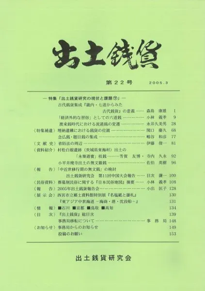 出土銭貨 第22号 特集:出土銭貨研究の現状と課題 下