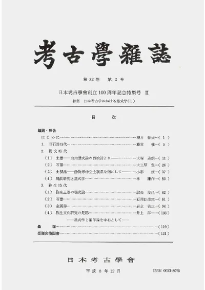 考古学雑誌 第82巻第2号 日本考古学会創立100周年記念特集号2 特集:日本考古学における型式学1