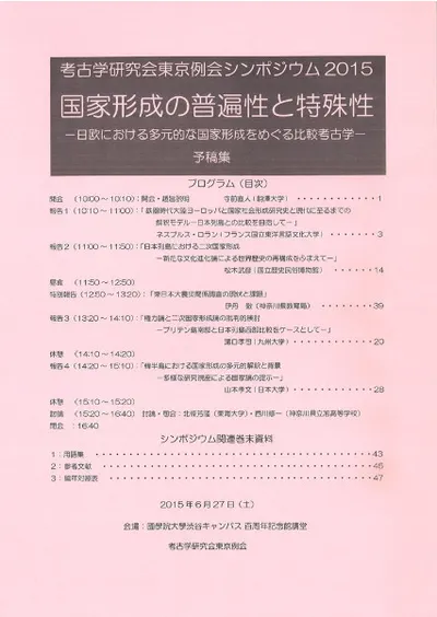 シリーズ 考古学研究会東京例会シンポジウム2015予稿集