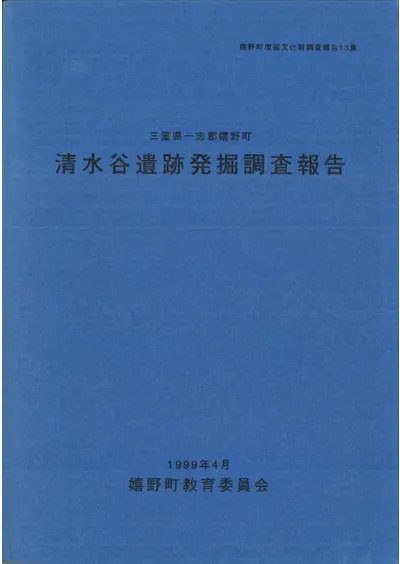 三重県一志郡嬉野町 清水谷遺跡発掘調査報告