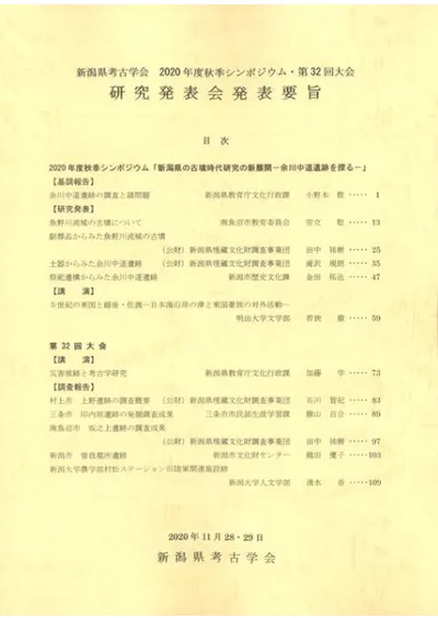 新潟県考古学会 2020年度秋季シンポジウム・第32回大会研究発表会発表要旨