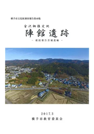 金沢柵推定地陣館遺跡 : 総括報告書補遺編後三年合戦で活躍した清原氏の館とされる大鳥井山遺跡(国史跡)に関連する金沢柵の推定地陣館遺跡を追加指定するための総括報告書の補遺編として作成された冊子。この遺跡は金沢柵内に設けられた寺院エリアと推定される。投稿者名未設定